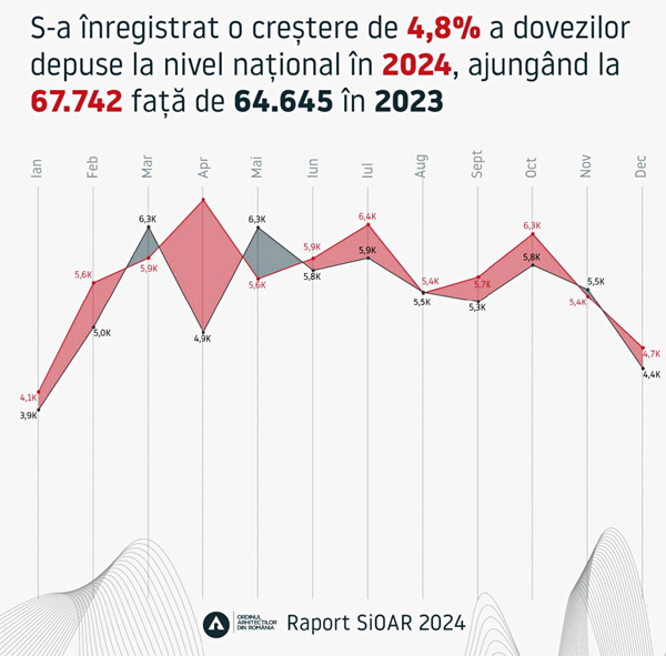 Dinamica depunerii dovezilor pentru proiecte de arhitectura la nivel national (in 2024, comparativ cu 2023) este redata in foto 3.